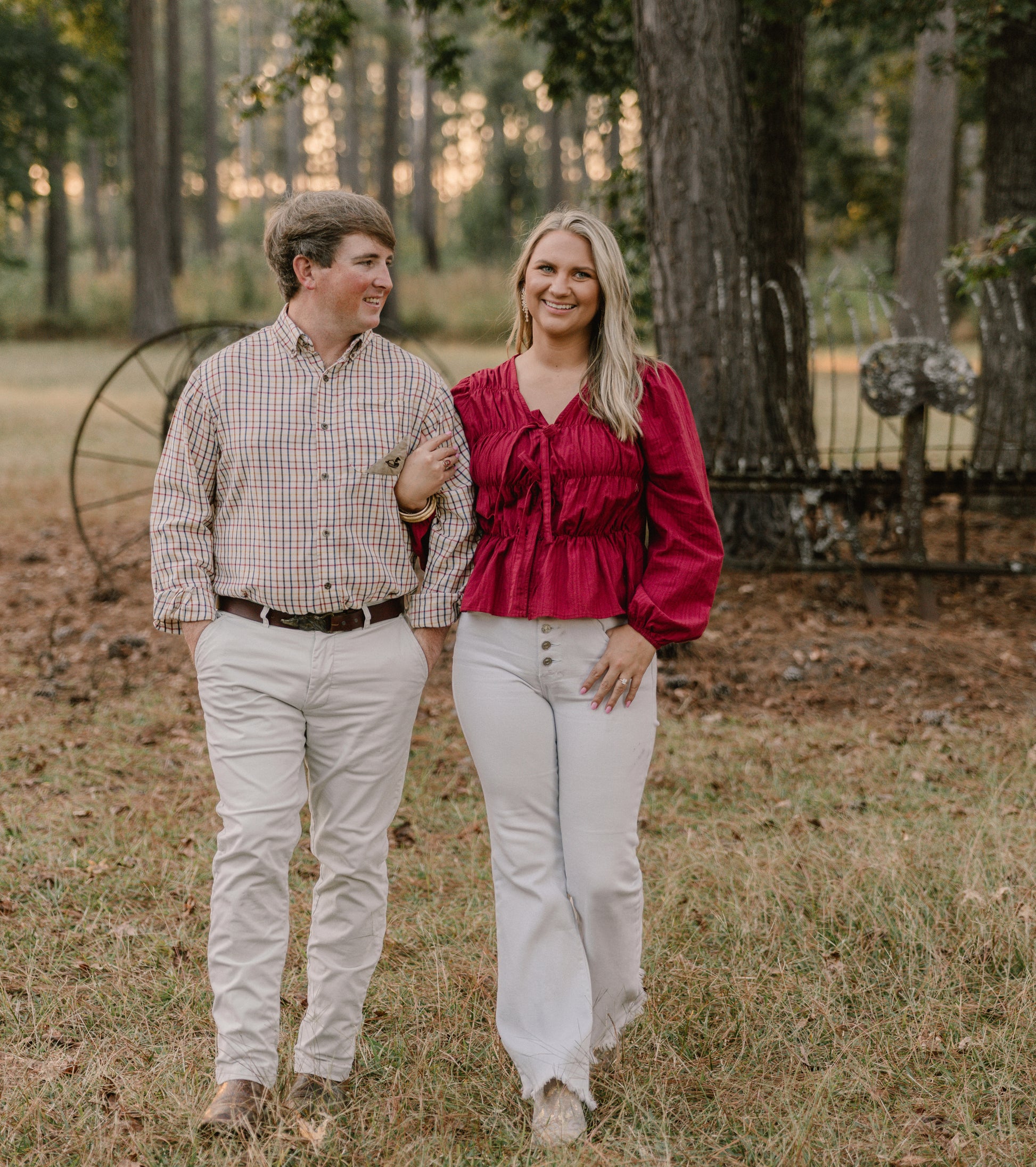 Hailey is wearing a size small, paired is Reed wearing out best selling Dixie Decoys button up!